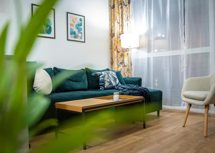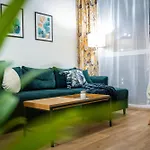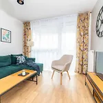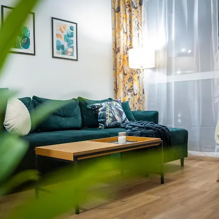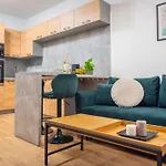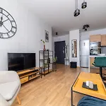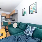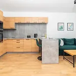 Eine Küchenzeile mit einem Wasserkocher, einem Kühlschrank und einem Herd gehört zu den Selbstversorgungsmöglichkeiten. Das 38 m^2 große Apartment Modern Park Wroclawska 5 ist in nur 5 Gehminuten Entfernung von der Bushaltestelle Grunwaldzka / Kanalowa.